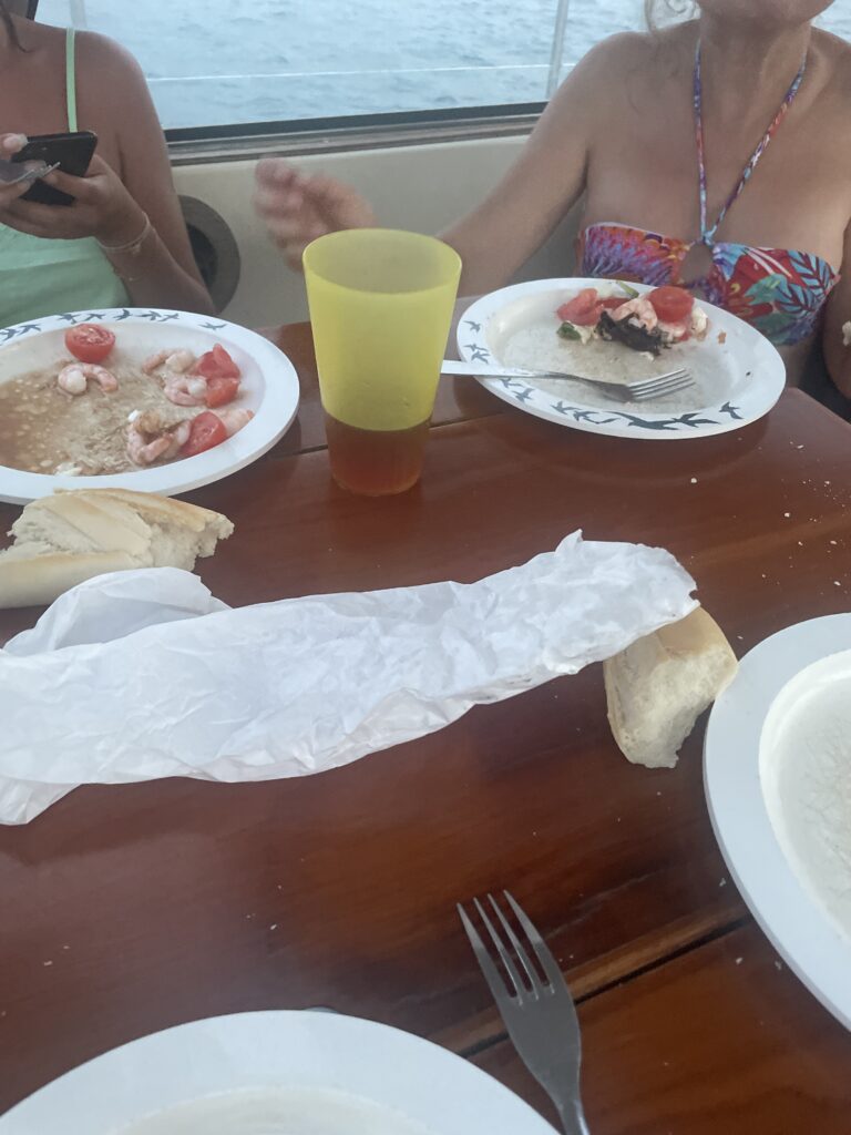20h apéro pique nique sur la plage. Ce coup ci on n’était pas totalement seuls. Quelques personnes passaient de temps en temps à pied ou en dinghy. 3 personnes ont du sauter à l’eau habillé à cause de la houle car le dinghy ne pouvait aller jusqu’à la plage 😅