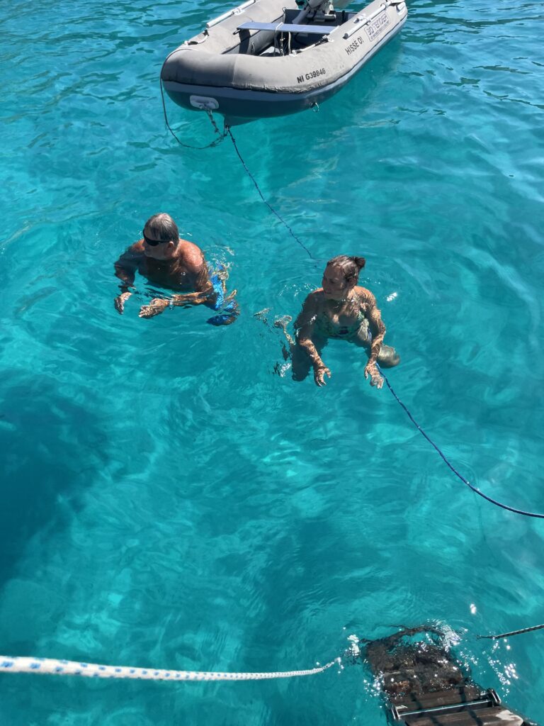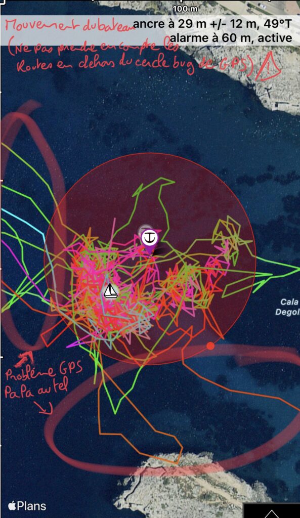 2e tentative= on a posé l’ancre trop o rapidement de peur qu’un catamaran nous pique la place mais on s’est retrouvé trop proche d’un autre voilier.