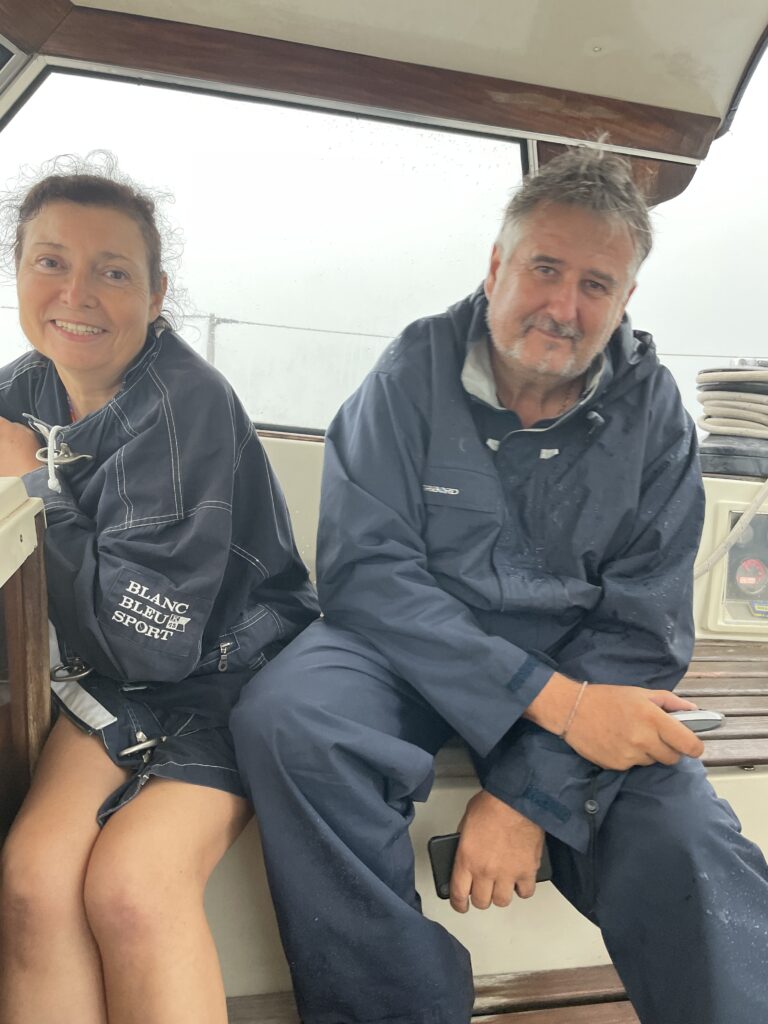 18h= on constate une légère entrée d’eau au niveau du passé-coque au dessus de la ligne de flottaison bâbord. Le pascoque doit être mal collé sûrement. Papa a nettoyer le contour ce qui a colmaté le trou.