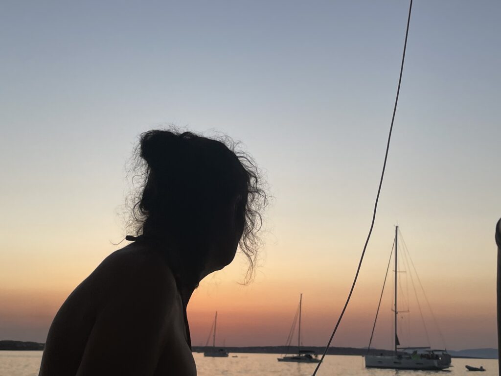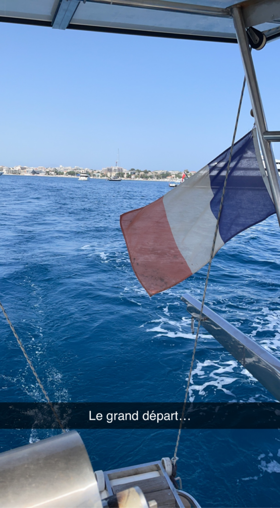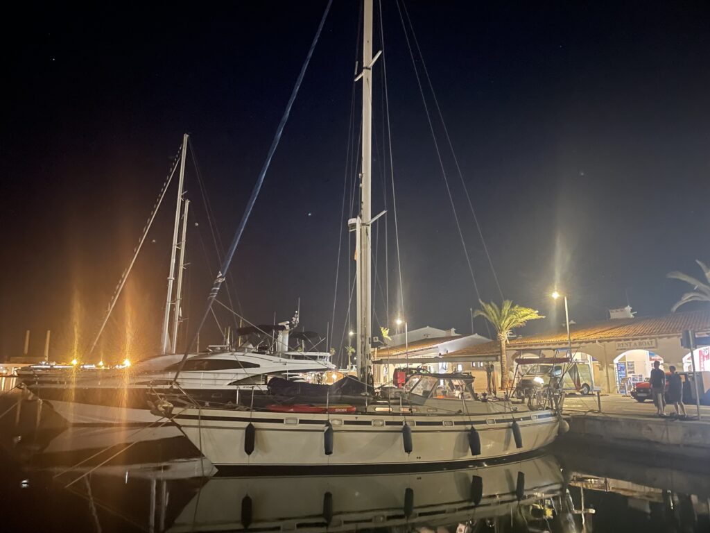 Maman et moi commençons le quart jusqu’à 2-3h du mat. On doit surveiller notre cap au 30°, la vitesse du vent qui ne doit pas dépasser 25nds et la direction du vent qui ne doit pas changer au 130° bâbord. Les vagues nous secouaient de gauche à droite, rendant fragile cet équilibre. Nous avons croisé peu de bateaux. A 3h du mat, changement de quart. Je reste un peu avec papa. Nous avons croisé un voilier géant de 111m ! Un véritable arbre de noël. Nous avançons toujours à 5-6nds. On a fini la navigation en motor sailing. Un gros yacht a failli nous percuter au niveau des îles de lerins. Il avançait à 20-30nds sans personne à la cabine de pilotage. Papa a été prévenu par l’AIS et le radar au dernier moment. Il a eu peu de temps pour réagir. Il a changé de cap le temps que le bateau passe quelques secondes après derrière nous nous formant des vagues. On a eu chaud…