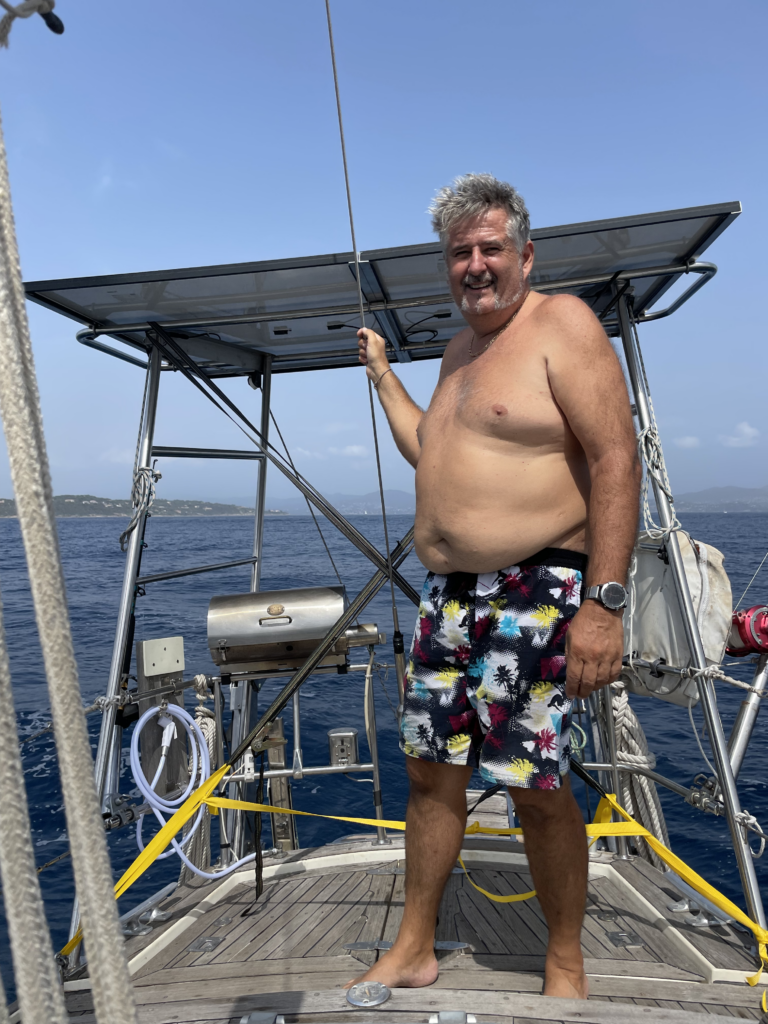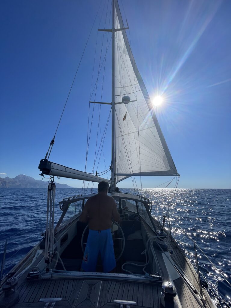 19h= nous longerons l’île de Porquerolle à la voile avec 15nds de vent en vent arrière. Nous avançons a 5-6 nds.
