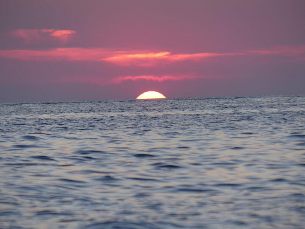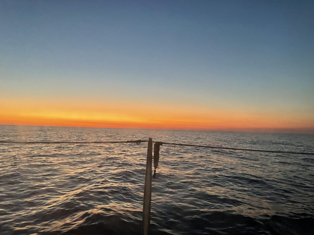21h= nous assistons à un nouveau coucher de soleil. Nous nous préparons pour notre 3e quart de nuit.