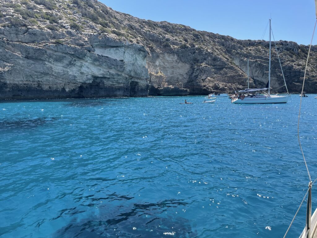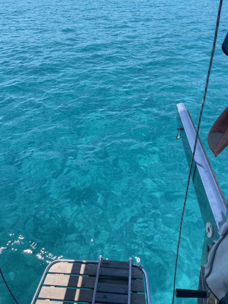 18h on lève l’ancre. Pour une fois c’est le capitaine qui a pris la barre et moi lauren qui a monté l’ancre car la manœuvre était très délicate. Notre ancre est vraiment très proche d’un voilier qui est arrivé plus tard. On devait donc se rapprocher de lui à moins de 5-6m.