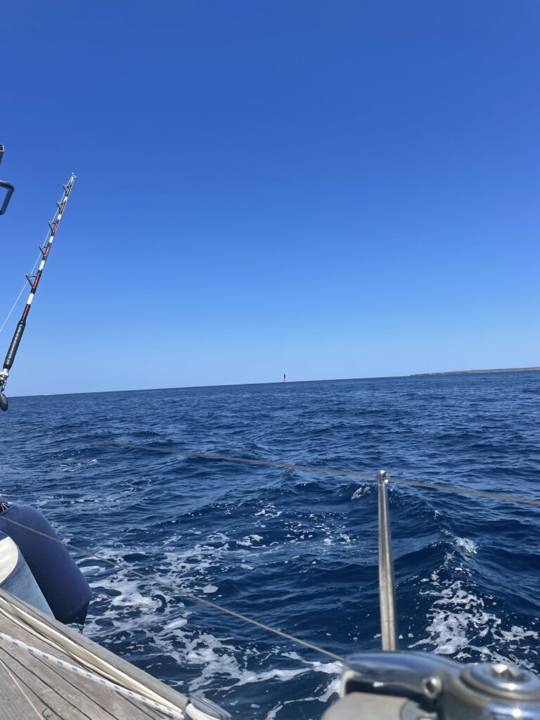 1h après le vent s’est de nouveau affaiblie a 6 noeuds. Nous avons donc allumé le moteur et fait du motor sailing. Nous avons fait le relèvement de quart.