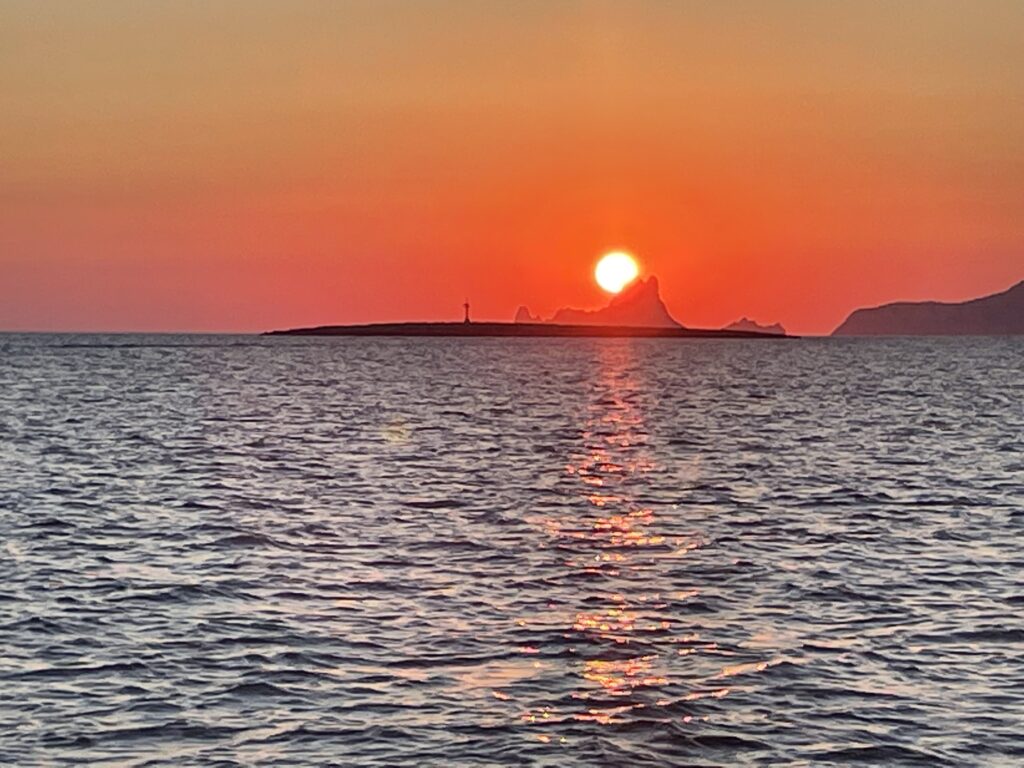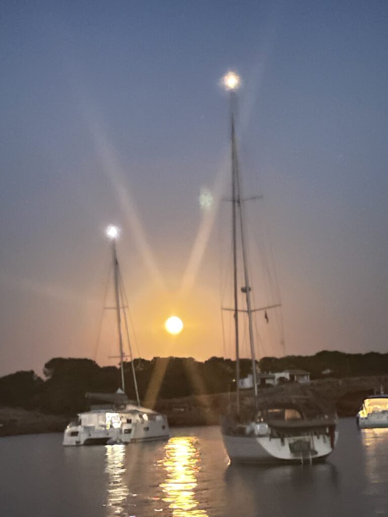 21h= nous longeons Majorque et avons récupérée le réseau. Le vent tombe petit à petit a 13 noeuds. Le soleil se couche petit à petit.