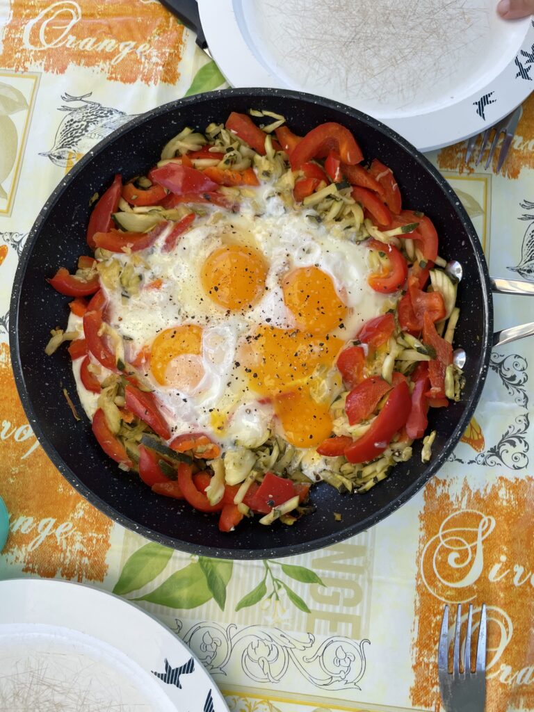 21h= On mange le reste de paella qui n’a pas été terminé hier. Miam Miam.