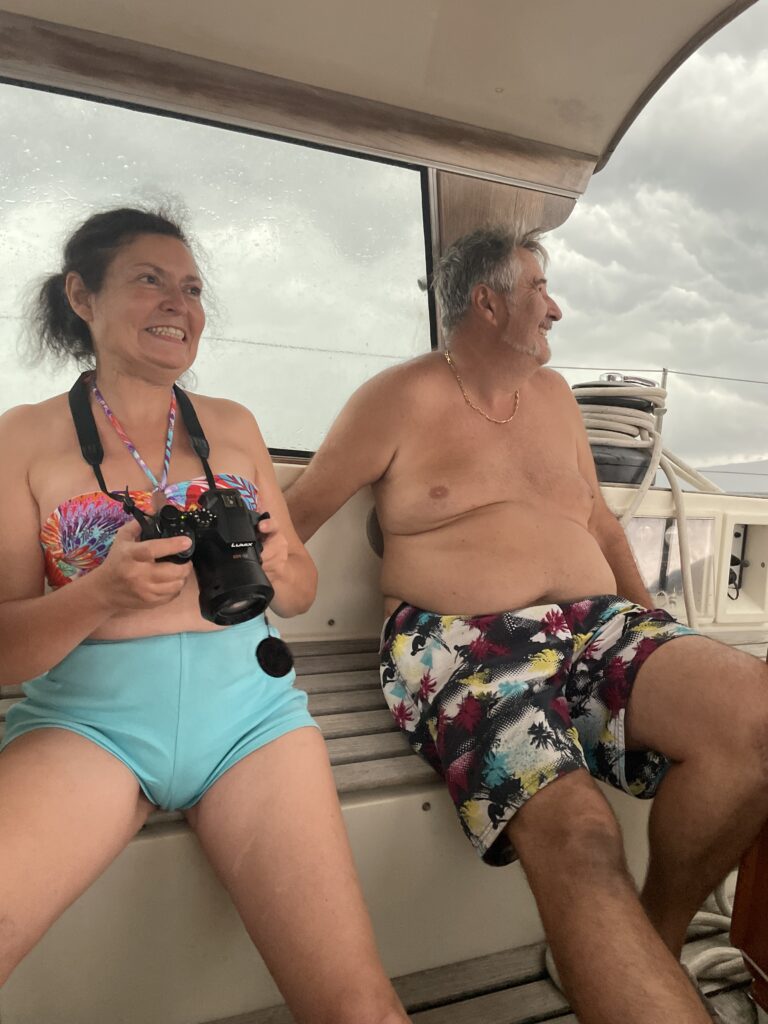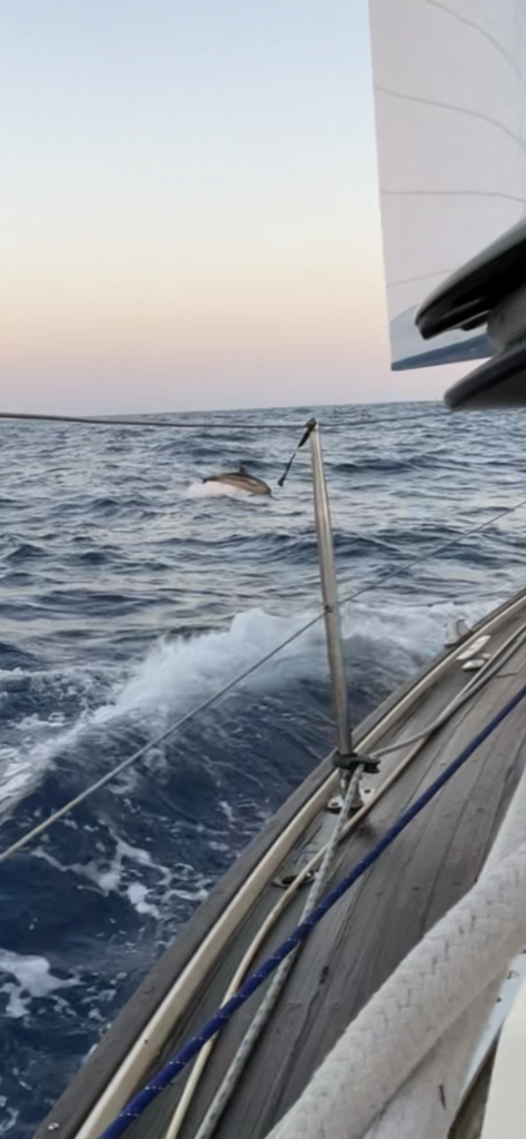 Maman s’est rejoint au levé du soleil. Elle a pu profiter d’une danse avec les dauphins à l’étrave du bateau.