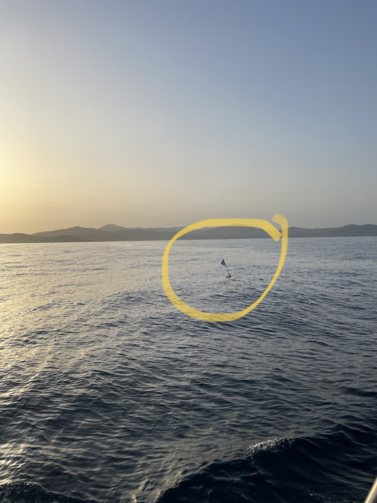 Pas très longtemps après, nous sommes passé à côté d’un ballon qui flottait. On souhaitait le récupérer mais on s’est très vite rendue compte que c’était en faite un Palangre a la dérive sous 200m de profondeur. Nous nous sommes éloignés très rapidement en priant que la ligne de pêche ne se prenne pas dedans. Heureusement tout s’est bien passée.